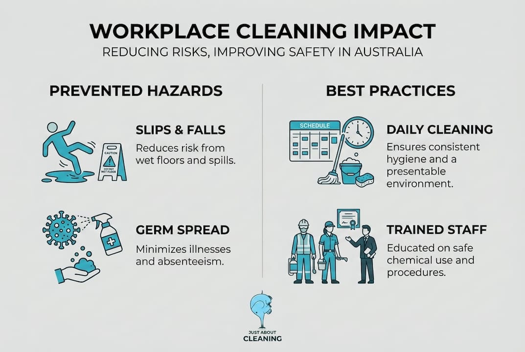 Slips, trips, and falls are among the most common causes of serious workplace injuries across Australia, and insufficient cleaning is a major contributing factor. Many business owners think of cleaning as a background task, something to keep spaces looking presentable. In reality, it is a frontline safety measure. Cleaning prevents injuries by removing spills, debris, and contaminants that turn ordinary floors into genuine hazards. This article walks you through the direct link between cleaning and workplace safety, identifies the risks a strong cleaning routine addresses, and gives you a practical framework for building a safer, healthier environment for your team.