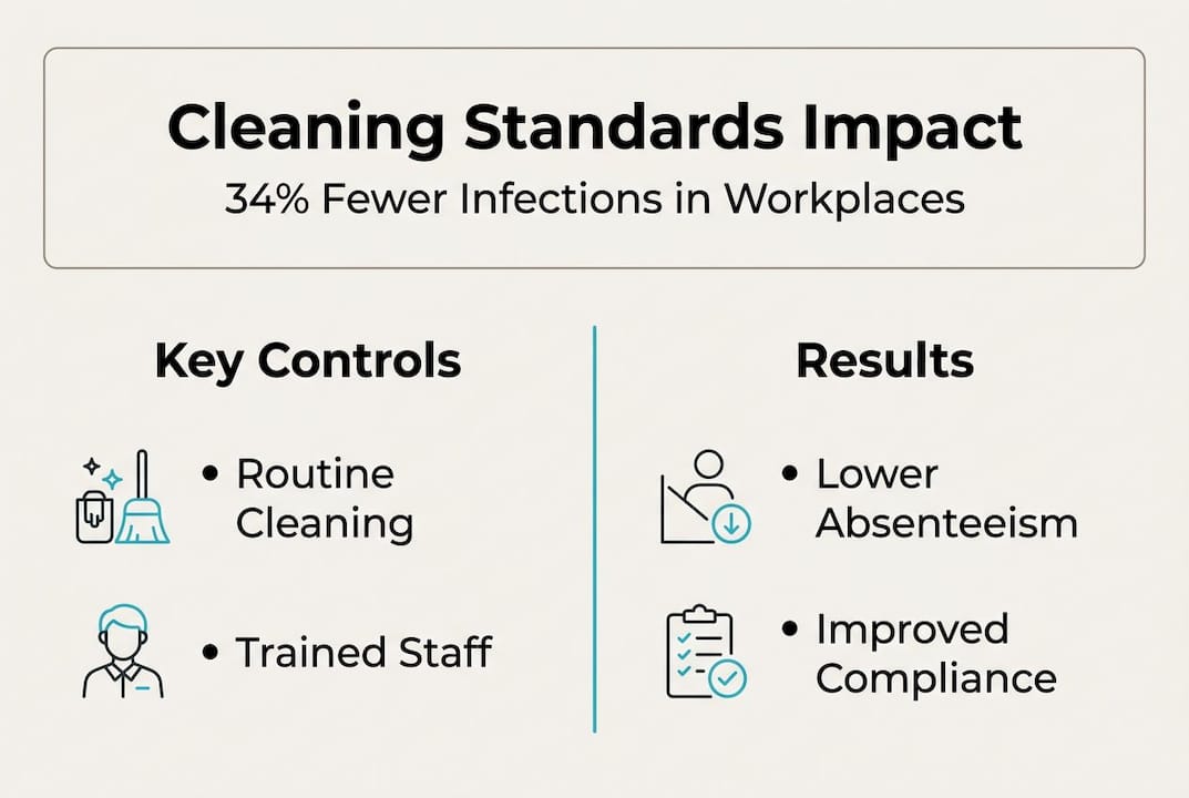 Consistent cleaning according to standards can reduce workplace illness by up to 80% and significantly cut absenteeism across all facility types.