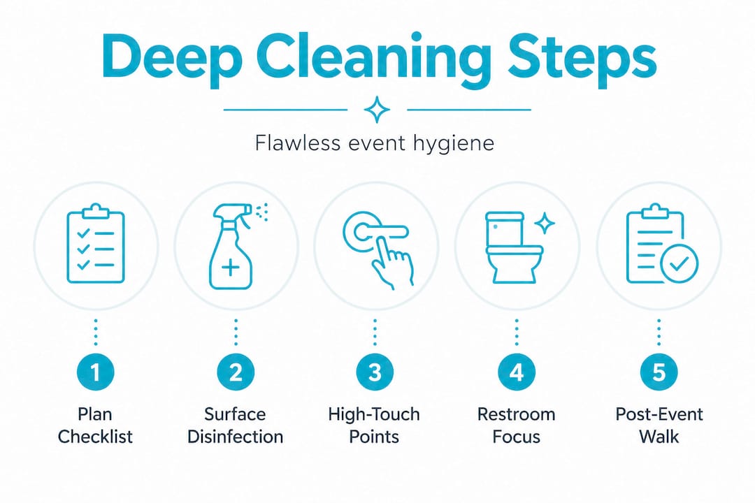 | Definition matters | Deep cleaning for events is more thorough and targeted than standard cleaning routines. |