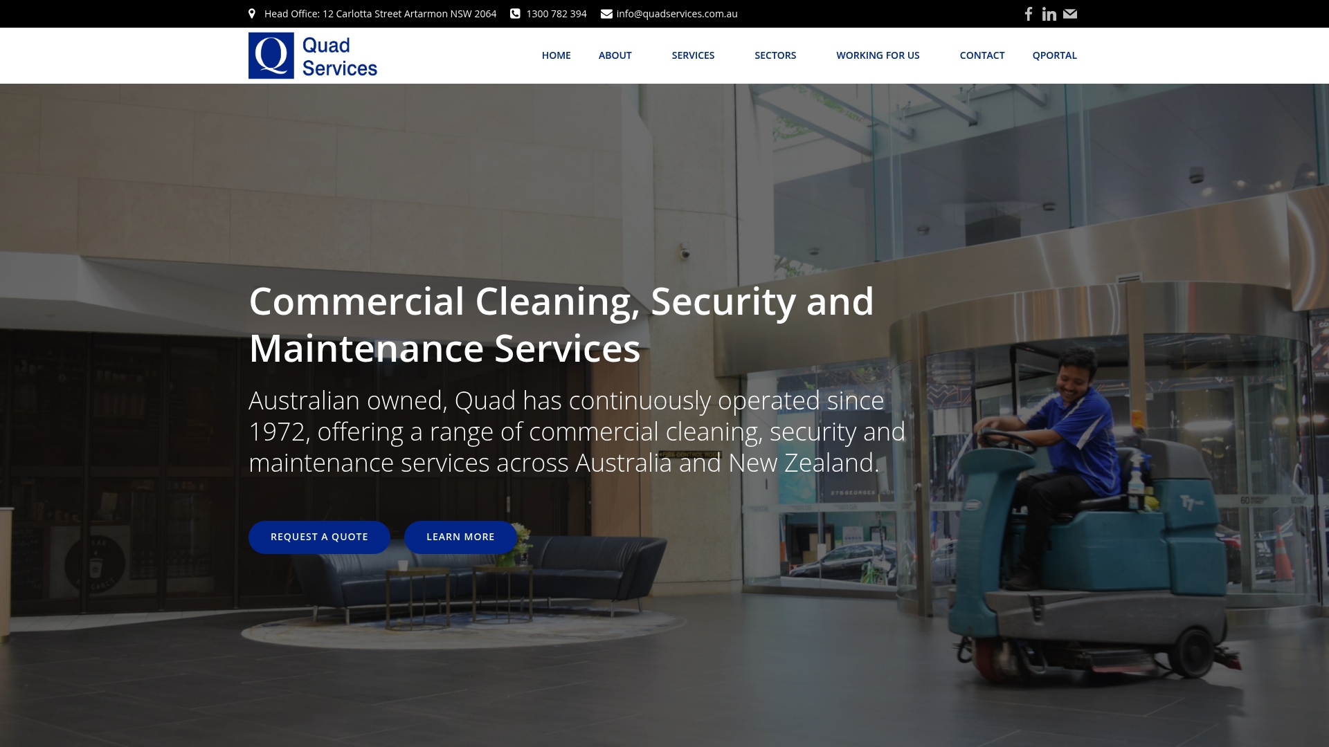 Quad Services Australia is an established, Australian owned provider with a long track record dating back to 1972. They offer broad commercial cleaning, security and maintenance services for organisations that prioritise reliability and compliance.