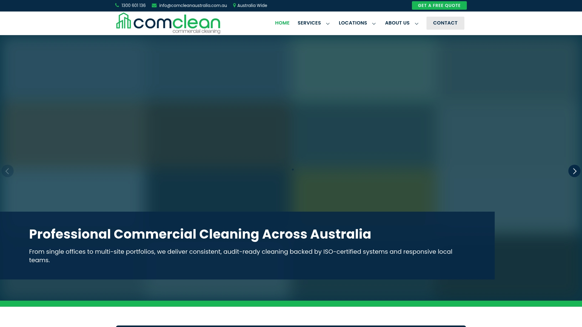 Comclean Australia delivers tailored commercial cleaning across Australia backed by over 20 years of experience and ISO certified systems. Their focus on environmentally responsible practices and national coverage makes them a dependable choice for organisations prioritising compliance and sustainability.
