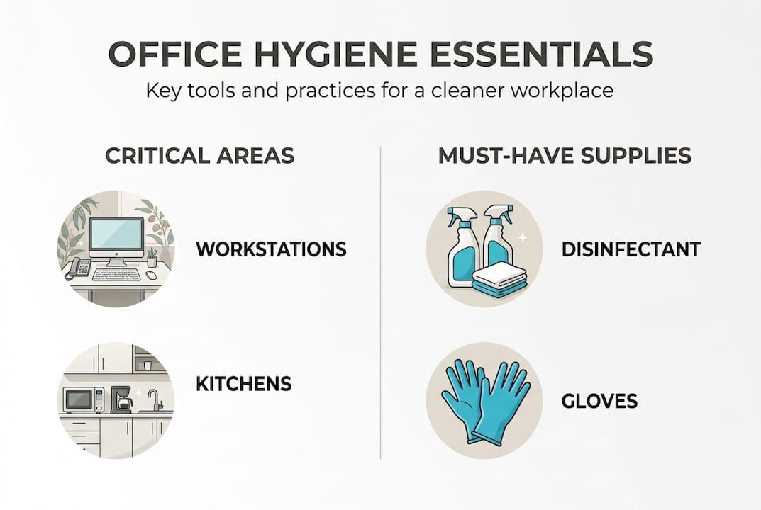 Maintaining a hygienic office environment is more challenging than many Australian business owners realise. High-touch surfaces, shared equipment, and fluctuating air quality create constant infection risks that impact employee wellbeing and client confidence. This comprehensive guide equips you with practical strategies to identify hygiene priorities, implement effective cleaning routines, and monitor standards consistently. You'll discover how to prepare your team with the right tools, execute daily and periodic sanitisation tasks, and sustain cleanliness over time. By following these proven maintenance approaches, you'll protect your workforce, enhance your professional reputation, and create a workspace that supports productivity and health.